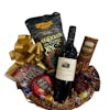 This lovely basket full of good cheer and savory treats is perfect for the holidays - or any day! Complete with a rich bottle of Canyon Oaks Cabernet Sauvignon OR Chardonnay, Castello Creamy Gouda Cheese, Les Trois Petit Cochons Toast Crackers, Peruvian Pepper Jam, Gourmet Pretzel Rings, cream-filled Cookie Wafers & assorted Lindt Chocolates.